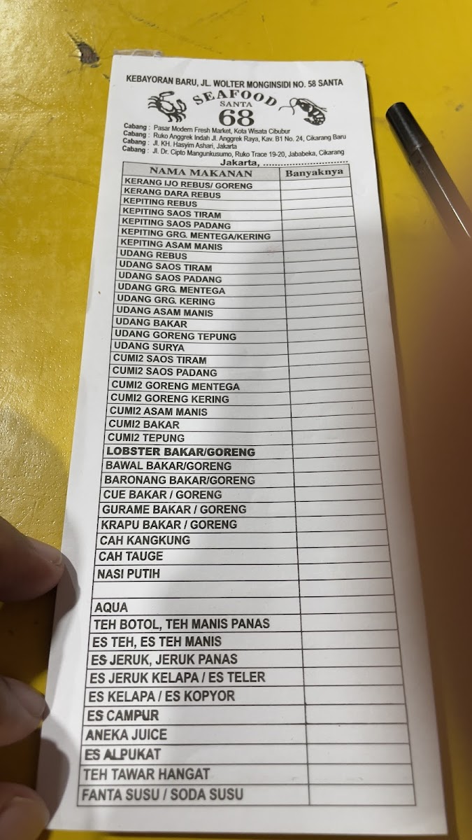 Whether you're a seafood aficionado or just looking to explore Indonesian flavors, Seafood 68 Santa promises a memorable culinary adventure in the heart of South Jakarta.